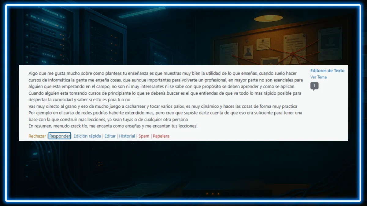 Muy contento con tus explicaciones y contenido. Se nota tu profesionalismo y amor por lo que haces. ¡Cuenta conmigo para la próxima! Gracias por todo.
